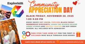 Celebrate Community, Creativity, and Cheer this Black Friday Open Hours, November 28, 2025 (Black Friday)Community Appreciation Day Black Friday at the Long Island Explorium! Black Friday at the Long Island ExploriumFriday, November 28, 20251:00 PM to 5:00 PM Kick off the holiday season with a STEM filled afternoon at the Long Island Explorium. Bring the…