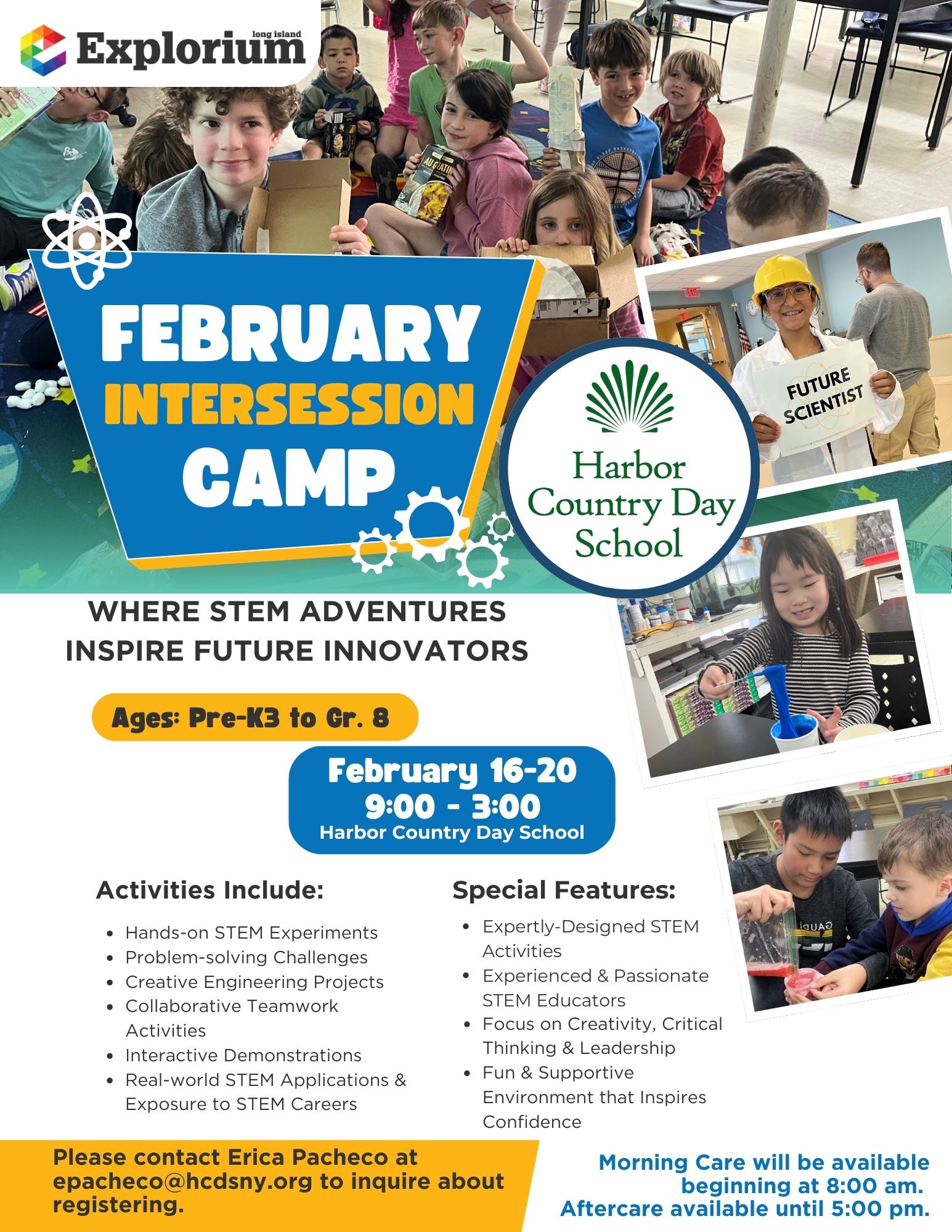 The Long Island Explorium is excited to bring its hands on STEM programming to Harbor Country Day School for our 2026 February Intersession Camp designed to spark curiosity, creativity, and confidence in young learners.